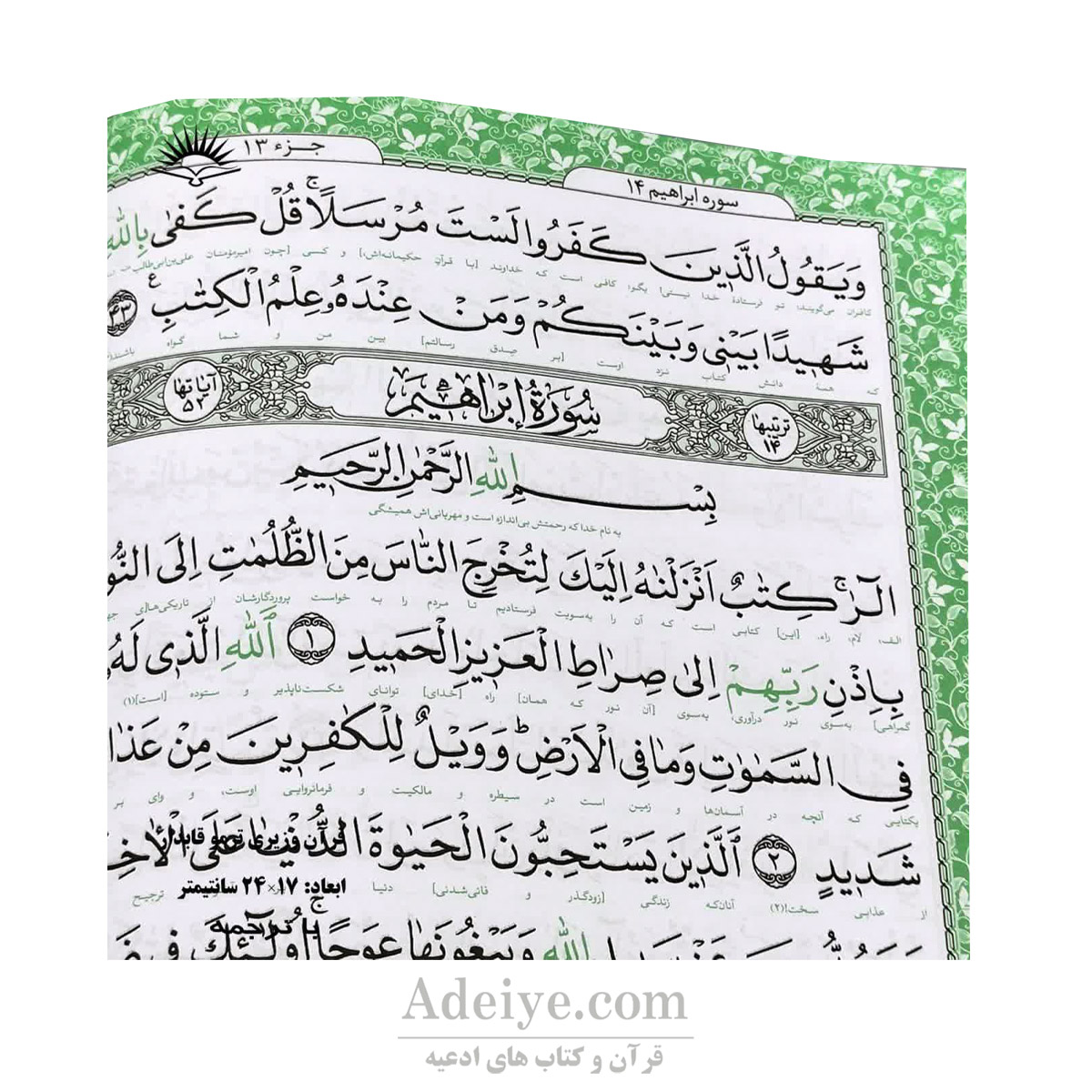 | توضیحات تکمیلی | کتاب قرآن کریم در قطع وزیری (۱۷×۲۴) جلد ترمو قابدار و قاب کشویی برش لیزری همراه با صفحه های رنگی |