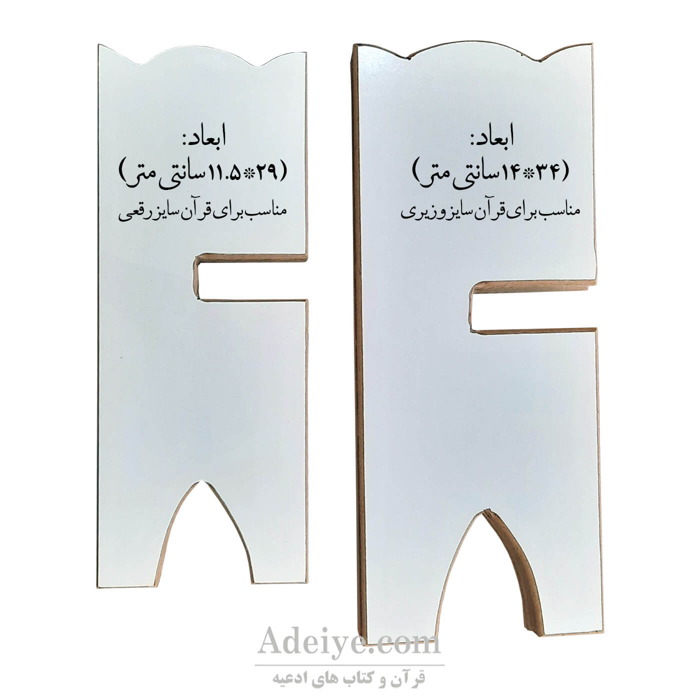 رحل قرآن ام دی اف سفید دو تیکه مناسب قرآن وزیری و رقعی 16میلیمتر محکم این رحل از جنس ام دی اف ضخیم با روکش ضدخش ساخته شده است و بسیار مقاوم است. رحل بزرگ مناسب قرآن ها معمولی که معمولا توی مساجد هست می باشد و رحل کوچک هم برای همان قرآن ها قابل استفاده است ولی در اصل رحل کوچک برای قرآن های رقعی که کمی سایز کوچکتری دارد می باشد.